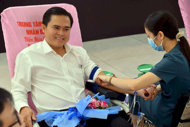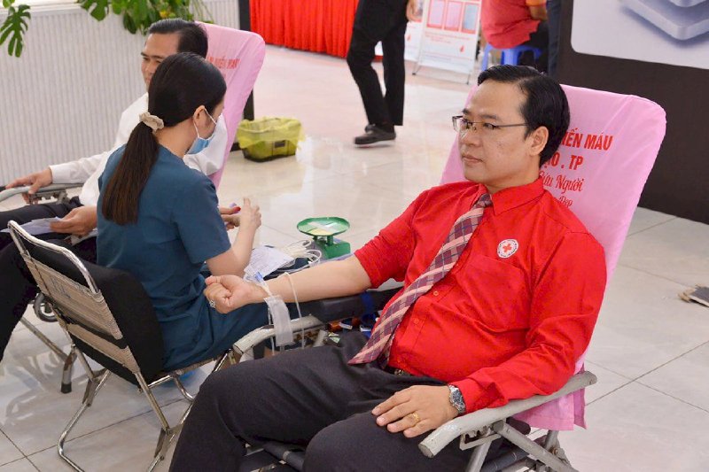 Ông Nguyễn Minh Nhựt - Chủ tịch Hội Chữ thập đỏ TP.HCM hiến máu tình nguyện