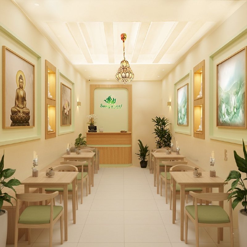Không chỉ chú trọng ẩm thực, chị còn trực tiếp tham gia lên ý tưởng decor quán, tạo nên một không gian vừa ấm cúng, vừa hiện đại, phù hợp để thực khách trải nghiệm ẩm thực chay một cách trọn vẹn.