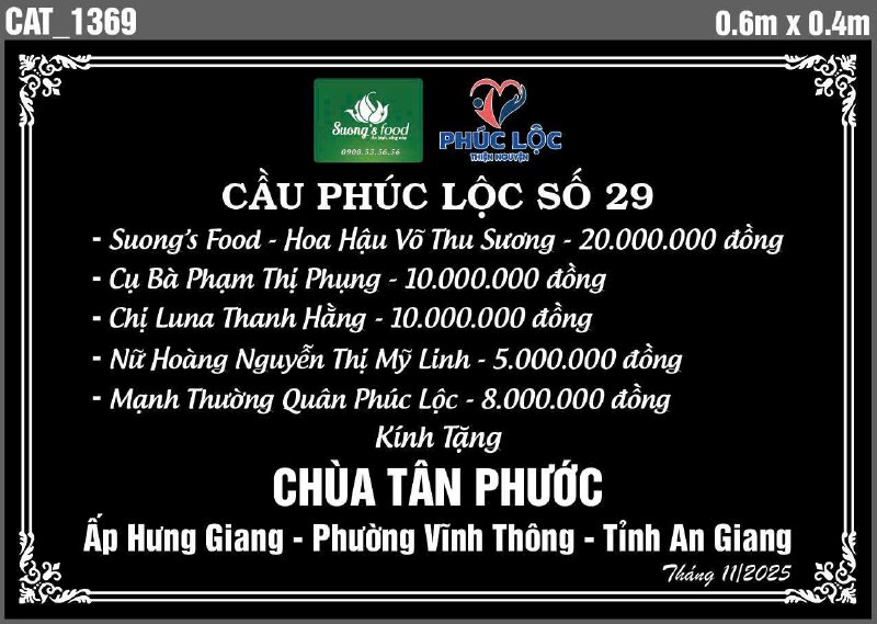Vừa qua, Suong’s Food đã chung tay xây dựng cây cầu số 29 – công trình được kính tặng Chùa Tân Phước, ấp Hưng Giang, phường Vĩnh Thông, tỉnh An Giang. Đây là nhịp cầu không chỉ nối liền đôi bờ mà còn mang theo niềm tin và hy vọng cho bà con địa phương.