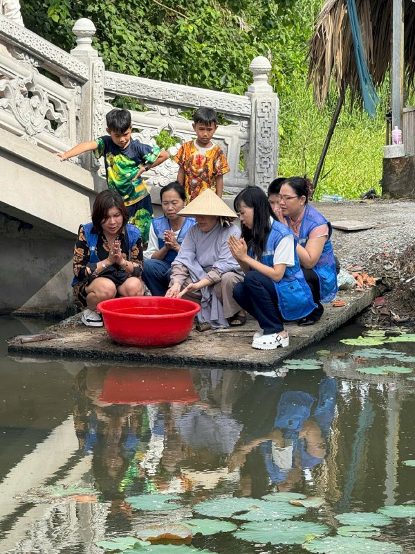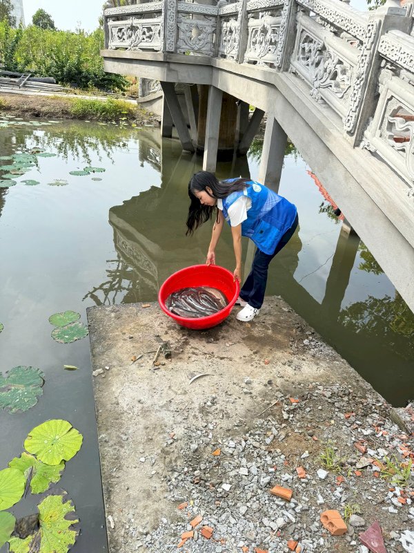 Bên cạnh đó, Hoa hậu Võ Thu Sương còn tham gia hoạt động thả cá phóng sinh, hồi hướng công đức tại chùa, lan tỏa thông điệp yêu thương, từ bi và nhân ái.