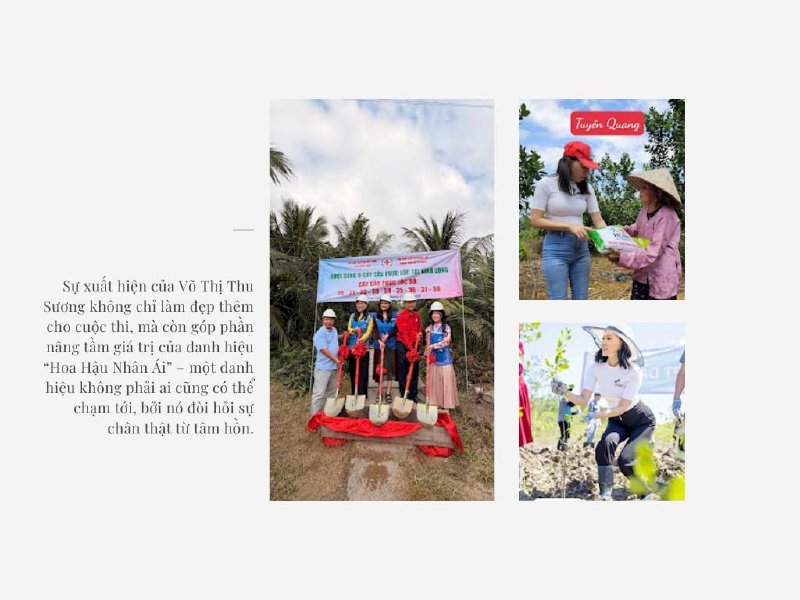 Sự xuất hiện của Võ Thị Thu Sương không chỉ làm đẹp thêm cho cuộc thi, mà còn góp phần nâng tầm giá trị của danh hiệu “Hoa Hậu Nhân Ái” – một danh hiệu không phải ai cũng có thể chạm tới, bởi nó đòi hỏi sự chân thật từ tâm hồn.