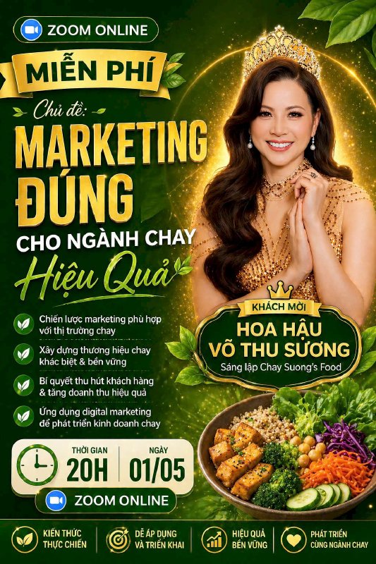 Nhằm hỗ trợ cộng đồng kinh doanh chay có định hướng rõ ràng hơn, workshop online miễn phí với chủ đề “Marketing Đúng Cho Ngành Chay Hiệu Quả” sẽ được tổ chức qua nền tảng Zoom, mang đến những kiến thức thực tế, dễ áp dụng.